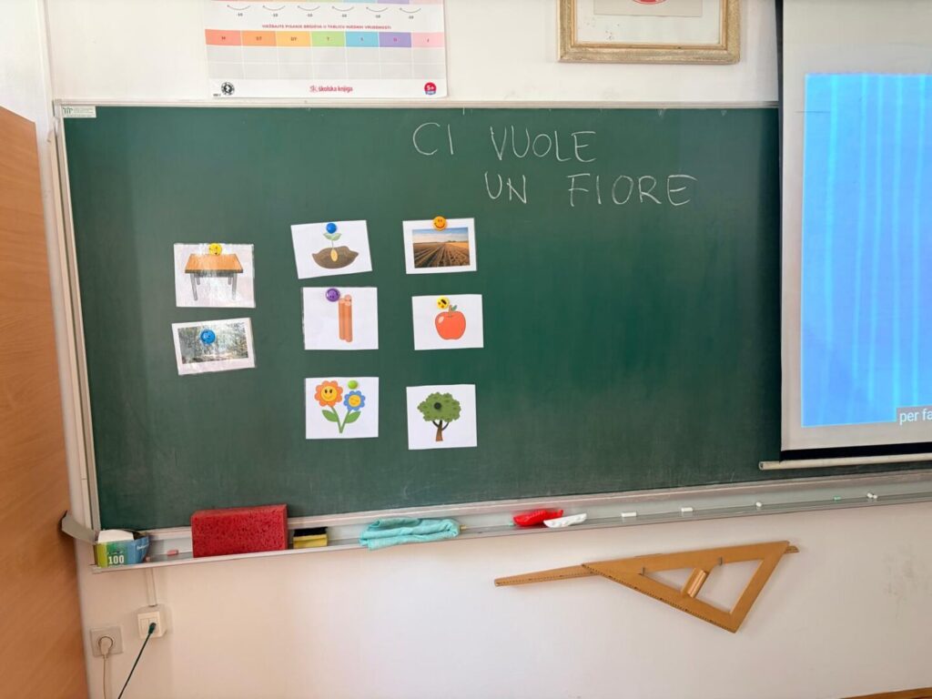Kroz slušanje i pjevanje pjesme učenici su upoznali jednostavan rječnik vezan uz prirodu (sole, fiore, seme, albero) te su usvajali jezične strukture kroz ritam i ponavljanje. Tema radionice bila je povezana s pojmom energije, posebno sunčeve energije koja omogućuje rast biljaka. Učenici su razgovarali o tome kako sunce daje energiju prirodi te kako sve u prirodi ima svoj početak.